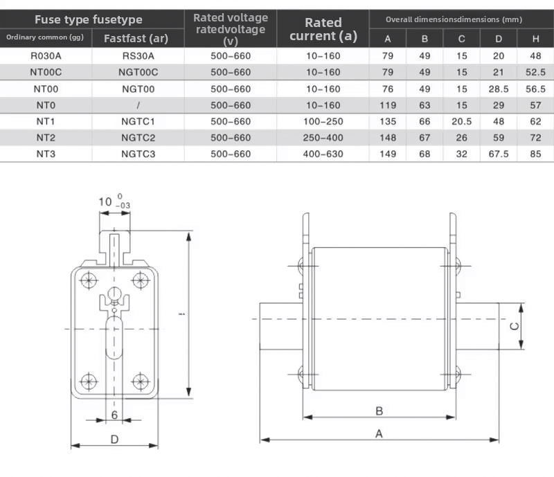 एनटी/एनएच श्रृंखला वर्गाकार सिरेमिक फ़्यूज़ का उपयोग आमतौर पर औद्योगिक विद्युत उपकरण, बिजली प्रणालियों और इलेक्ट्रॉनिक उपकरणों में सर्किट को ओवरलोड और शॉर्ट सर्किट से बचाने के लिए किया जाता है।