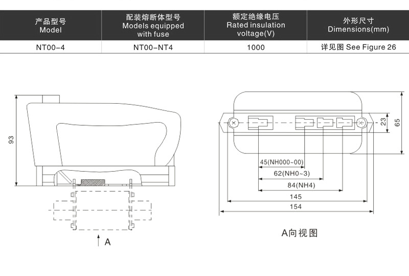 RT16-00 (NT00) फ्यूज एक उच्च प्रतिरोध/गर्मी प्रतिरोधी सिरेमिक बॉक्स में सील, चांदी या शुद्ध तांबे से बने चर क्रॉस-सेक्शन फ्यूज तत्वों से बना है। RT16-00 (NT00) की फ्यूज ट्यूब रासायनिक रूप से इलाज किए गए उच्च-शुद्धता वाले क्वार्ट्ज रेत से चाप बुझाने के माध्यम के रूप में भरी जाती है। सिल्वर प्लेटेड संपर्कों पर स्पॉट वेल्डिंग फ्यूज असेंबली किसी भी एप्लिकेशन में विश्वसनीय इलेक्ट्रिकल चैनल सुनिश्चित करती है।