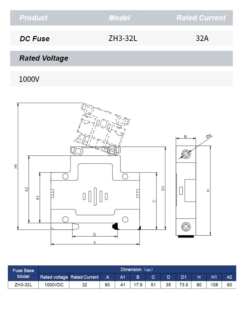 ZH32L DC 1000V फ्यूज होल्डर एक उच्च-प्रदर्शन घटक है जिसे फोटोवोल्टिक और अन्य डीसी अनुप्रयोगों में विद्युत सर्किट के लिए विश्वसनीय सुरक्षा सुनिश्चित करने के लिए डिज़ाइन किया गया है। मजबूत निर्माण और बेहतर इन्सुलेशन की विशेषता, ZH32L DC 1000V फ्यूज होल्डर 1000V DC तक रेटेड फ़्यूज़ को सुरक्षित रूप से रखने के लिए उपयुक्त है, जो प्रभावी रूप से ओवरकरंट और शॉर्ट-सर्किट क्षति को रोकता है।
