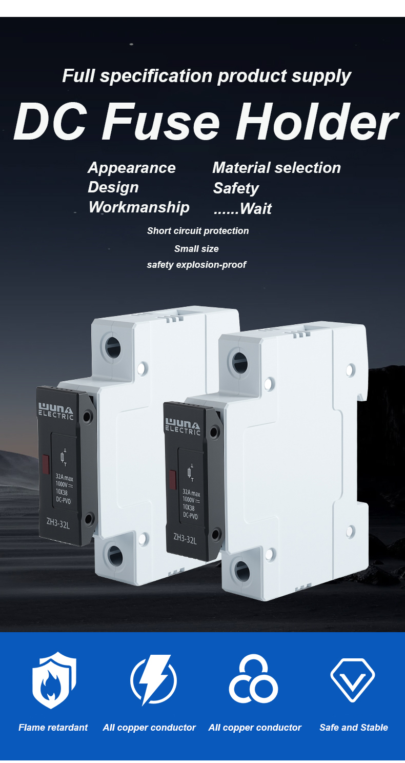 फोटोवोल्टिक कोशिकाओं के ZH32L DC 1000V फ्यूज होल्डर को विशेष रूप से फोटोवोल्टिक (पीवी) प्रणालियों में उपयोग के लिए डिज़ाइन किया गया है, मुख्य रूप से सौर पैनलों की सुरक्षा के लिए। सौर पैनलों की टूटने की स्थिति यह है कि दोषपूर्ण सौर सेल पैक को प्रभावी ढंग से तोड़ने के दौरान, यह अन्य सामान्य कार्यशील सौर सेल पैक के संचालन को प्रभावित नहीं करता है। ZH32L DC 1000V फ्यूज होल्डर फ्यूज पीवी मॉड्यूल और उसके कंडक्टरों को रिवर्स ओवरलोड करंट के खतरे से सुरक्षित रूप से बचा सकता है, भले ही डीसी बिजली आपूर्ति को खतरा हो। बाजार में उच्च-शक्ति सौर सेल पैक की बढ़ती मांग, फोटोवोल्टिक प्रणालियों और पवन ऊर्जा ग्रिड से जुड़ी बिजली उत्पादन अनुप्रयोग प्रौद्योगिकी के प्रचार और विकास के साथ, फोटोवोल्टिक सेल प्रणालियों के सुरक्षित ग्रिड से जुड़े संचालन की सुरक्षा के लिए उच्च-वोल्टेज डीसी फ़्यूज़ का उपयोग एक महत्वपूर्ण अंतरराष्ट्रीय तकनीकी उपाय बन गया है।