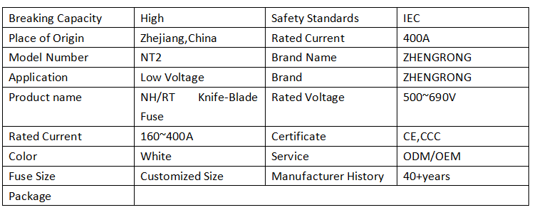 ZHENGRONG NT2 315A 500V फ़्यूज़ स्क्वायर सिरेमिक फ़्यूज़ का उपयोग आमतौर पर औद्योगिक विद्युत उपकरण, बिजली प्रणालियों और इलेक्ट्रॉनिक उपकरणों में सर्किट को ओवरलोड और शॉर्ट सर्किट से बचाने के लिए किया जाता है।
